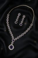 The Lilac Crush Set is crafted with pastel-lilac stones framed by shimmering diamond- cut detailing, giving you a soft yet eye-catching shine. The earrings offer a graceful face-framing effect, making you look refined in natural light and camera flashes. Its versatile tone pairs beautifully with sarees, lehengas, gowns, kurtis, and Indo-western looks, making it a perfect choice for weddings, parties, festive events, and gifting.